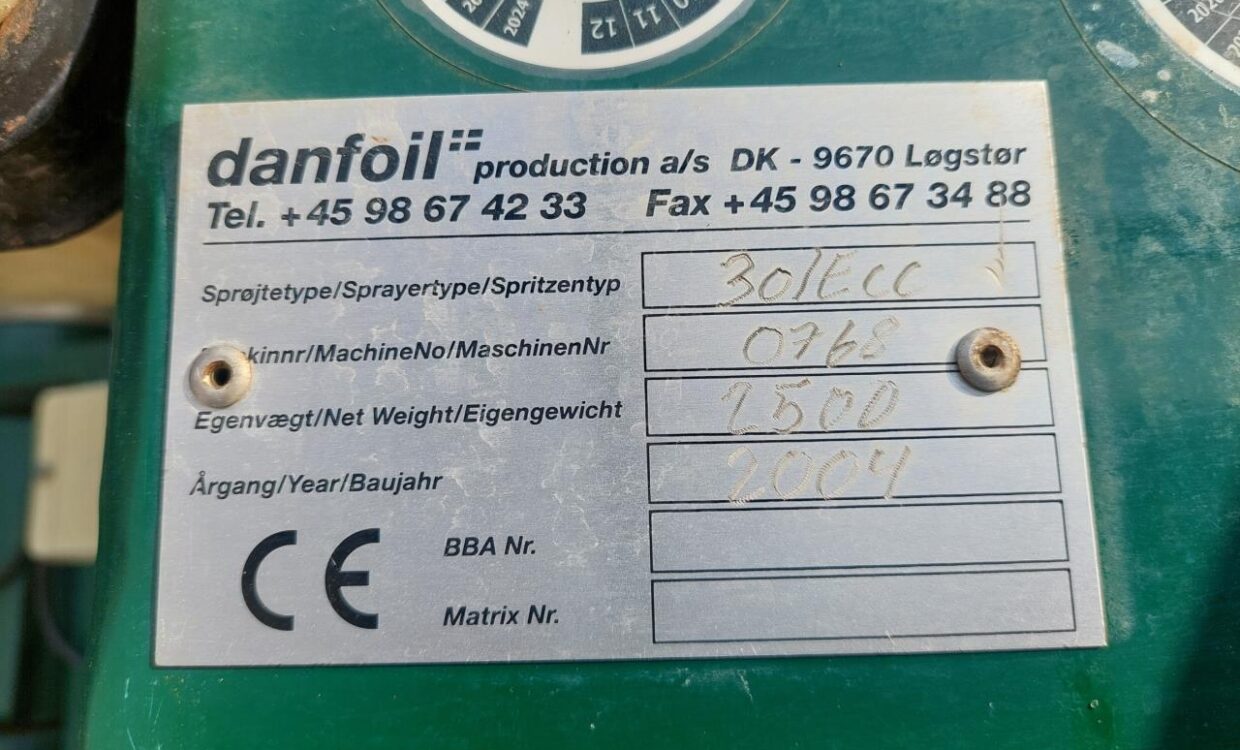 Danfoil ConCorde 3000L mit 30m Bom, chemische Abfüllanlagen und Waschanlagen, Verfolgung, Ölpumpe mit Zapfwellenantrieb, erfordert keine Hydraulik vom Traktor. V-Technik-Terminal und Joystick. 16.9-38 Radbefestigung. Funktionell und behält die Sicht 06-2025