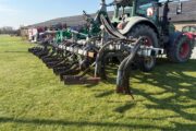 Samson CMX 8,6 Fallrohr umgebaut 12 Reihen von Mais, mit 2 Drainagen in jedem Zahn. Gebaut mit Kettenfreigabe nach dem Mistwagen, Doppelte Stützräder vorne und Hockeyschläger zum Schließen über der Güllelinie.