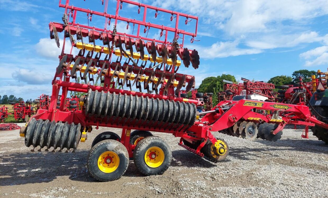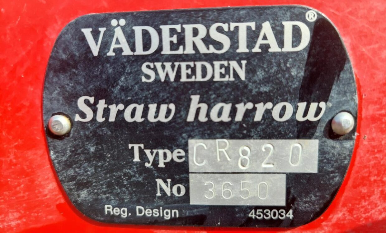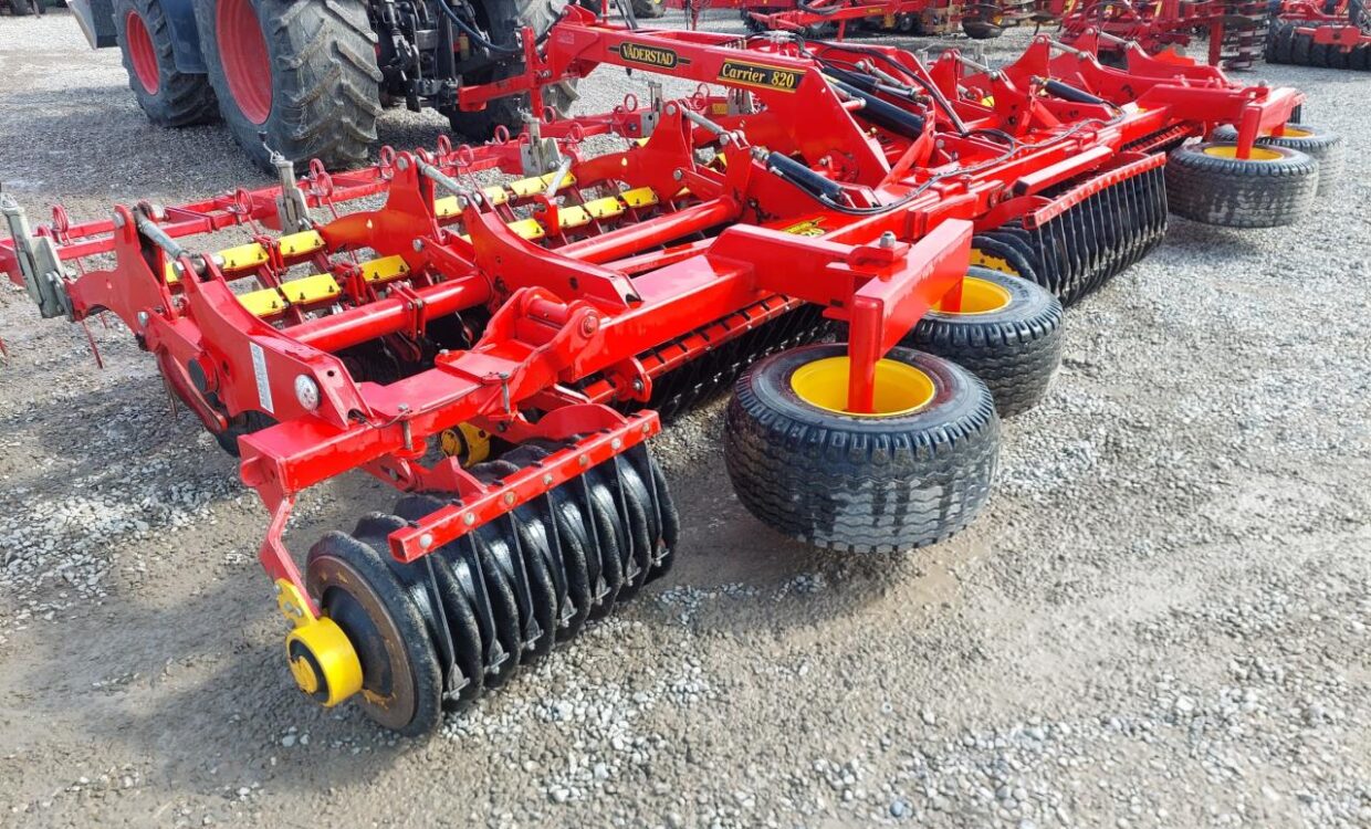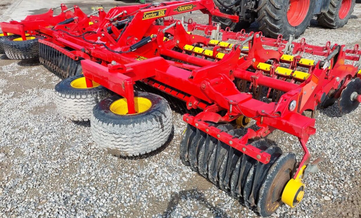 Väderstad Carrier 820 Mit Gummi -Läufer (Gummi -Rubbercaler) und Strawharrow vorne zur Verteilung von Stubrests und Stroh. Mit Ritgig gute Verschleißteile stehen.