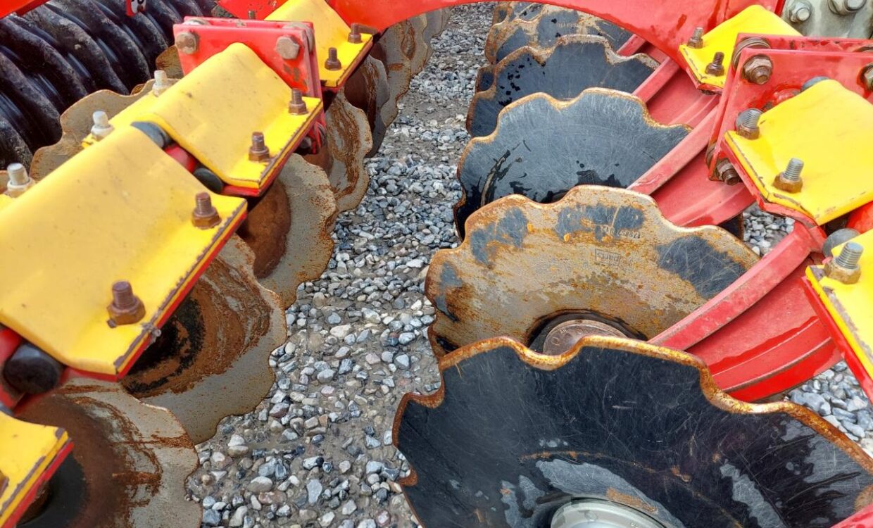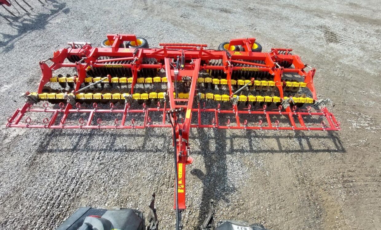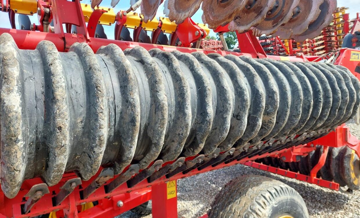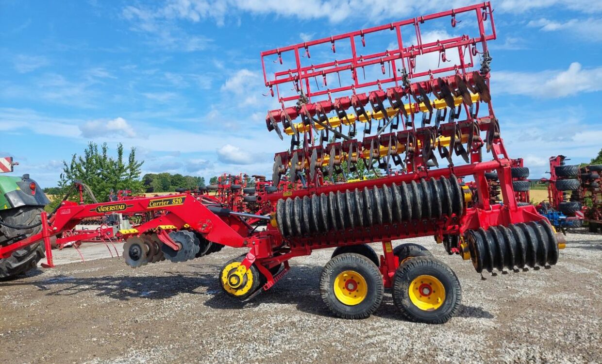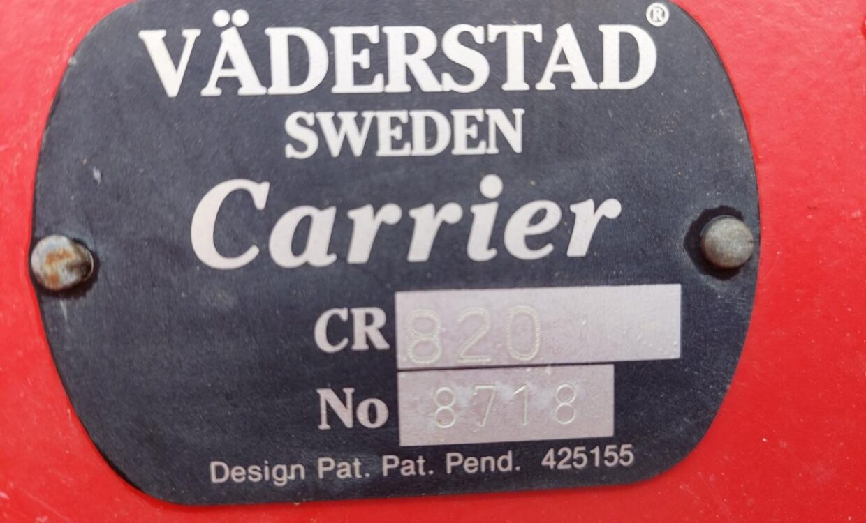 Väderstad Carrier 820 Mit Gummi -Läufer (Gummi -Rubbercaler) und Strawharrow vorne zur Verteilung von Stubrests und Stroh. Mit Ritgig gute Verschleißteile stehen.