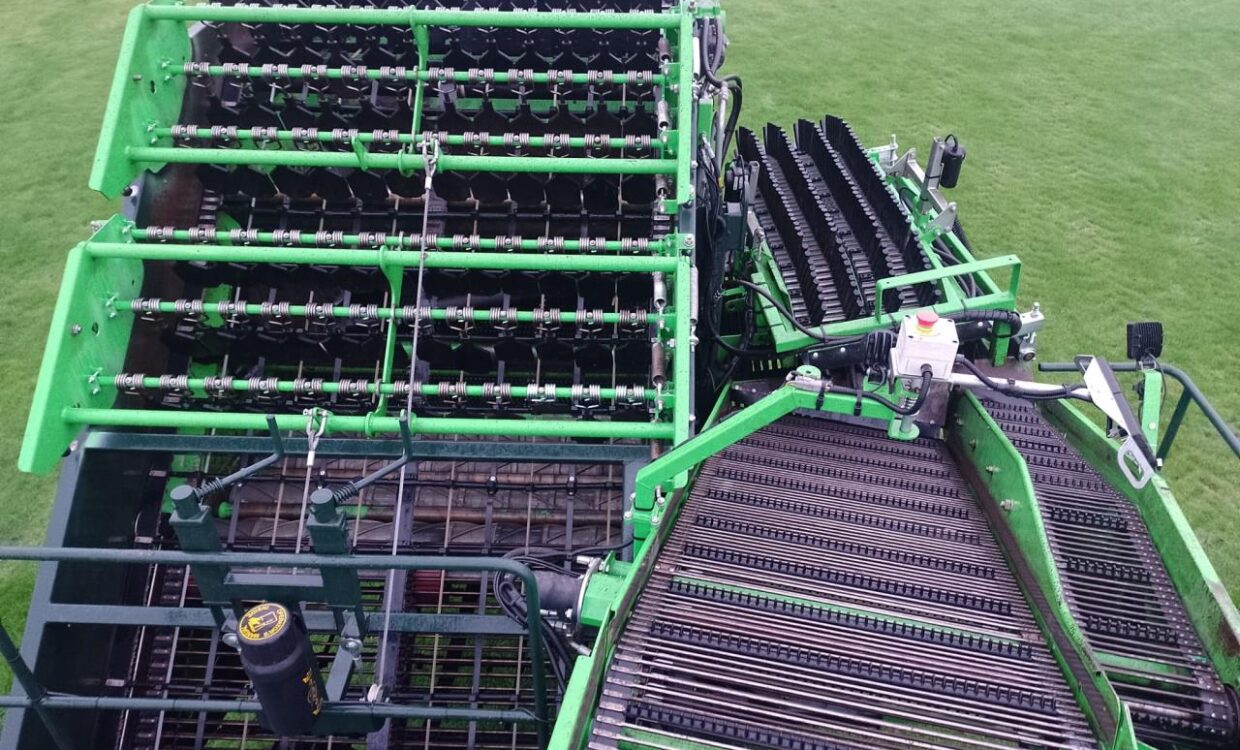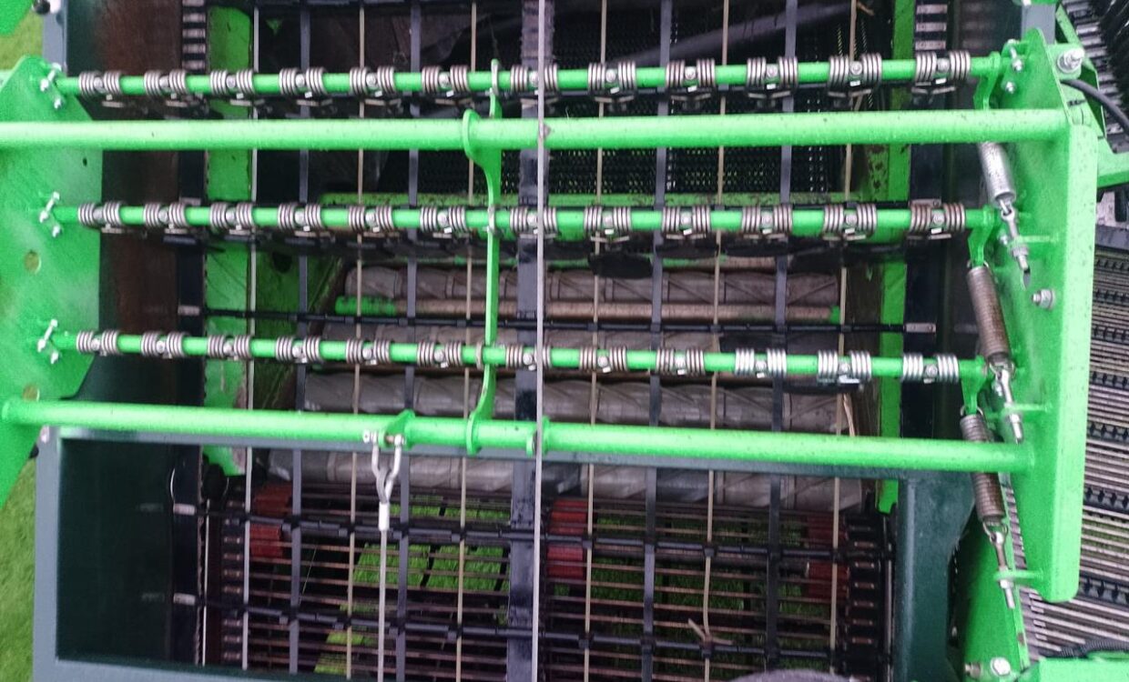 1. bottom chain 43, 2. bottom chain 43, Elevator chain 40, 75 cm row spacing, Hydraulic shaker i 1. bottom chain, Universal cutter holder incl. 3 split blade, Extra roller blade notched, Center cutter without disc cutter, Steel plates in introduction, Crossroller, 2 extra rows tear off, Aut. cam pressure regulation, Extra squeegee roller on 1. barbed wire, Booster function on 1. barbed wire, Electric adjustment of double wiper roller on 1. barbed wire, Electric adjustment of double rotor comb on 2. barbed wire, Hydrostatic wheel drive, Automatic level compensation, WB tank ca. 6,5 tons for non-stop unloading ,Ball joint, LED lys 6 PCS. 10″ monitor incl. 4. pcs HD camera,
