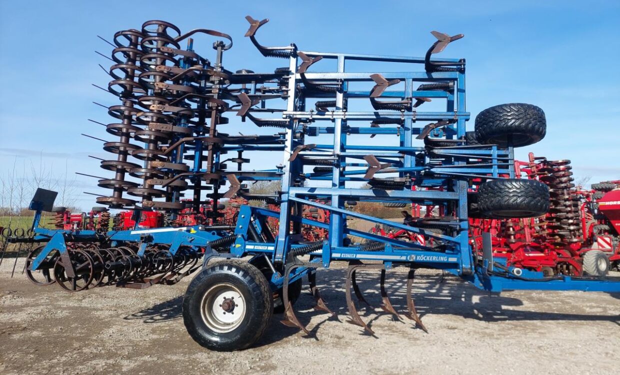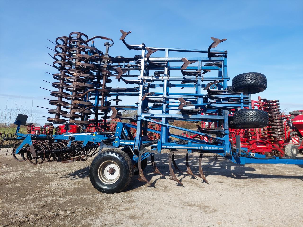 Köckerling Vector 570/800, 4 bullet with 21/29 teeth. Hydraulically adjustable depth control via the double support wheels and the double soil to soil packages (Double sts roller). The extra side wings with each 4 teeth, can be removed as needed. Equipped with after -harrow after the packages, fitted with hydraulic brakes and lights