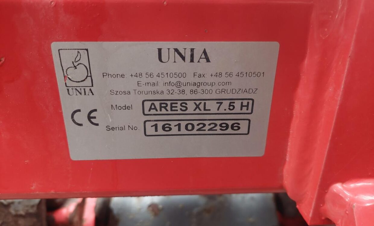Unia Ares XL 7.5 H downfall with Samson distributes, Expired in the front row of disc and hydraulically adjustable pipe packer roller. Mounted with front packs of wheels. Renter in disc is ok. The distributor stands with really good wear parts. Call for more info.