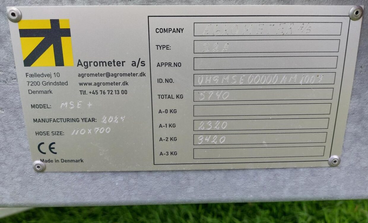 Agrometer MSE+ udstyret med 700m ø110mm slange. 4m fødeslange 3½”, Konkord Vario med 6 dyser, Solpanel, Modem med antenne og kabel og 3 punktsophæng m/hurtigkobler. Maskinen har kun været brugt til demo, fremstår som ny. Ring for yderligere info og pris.