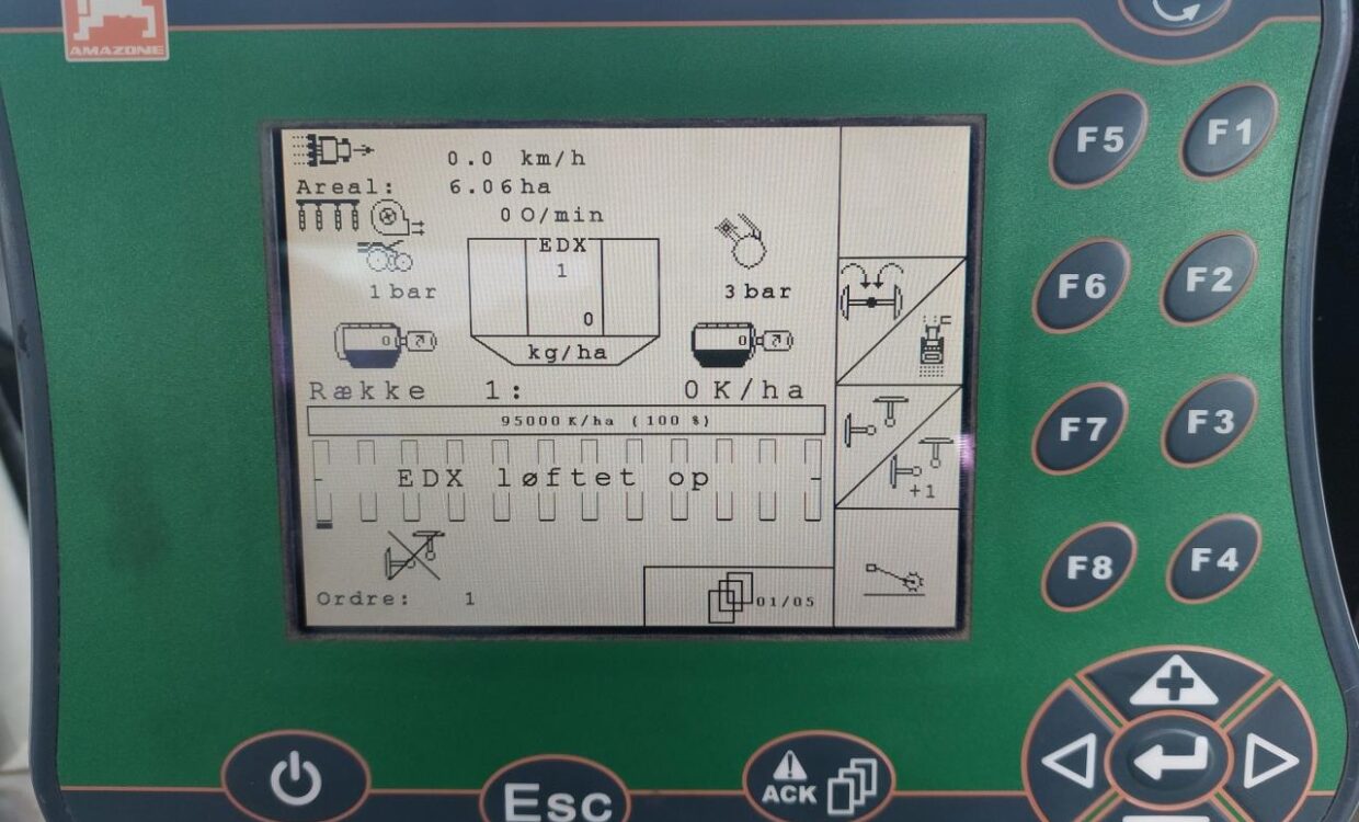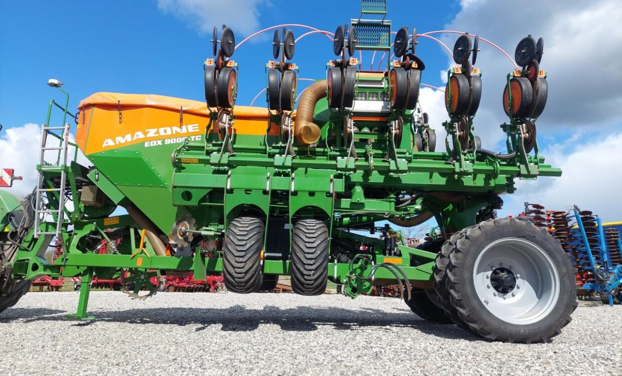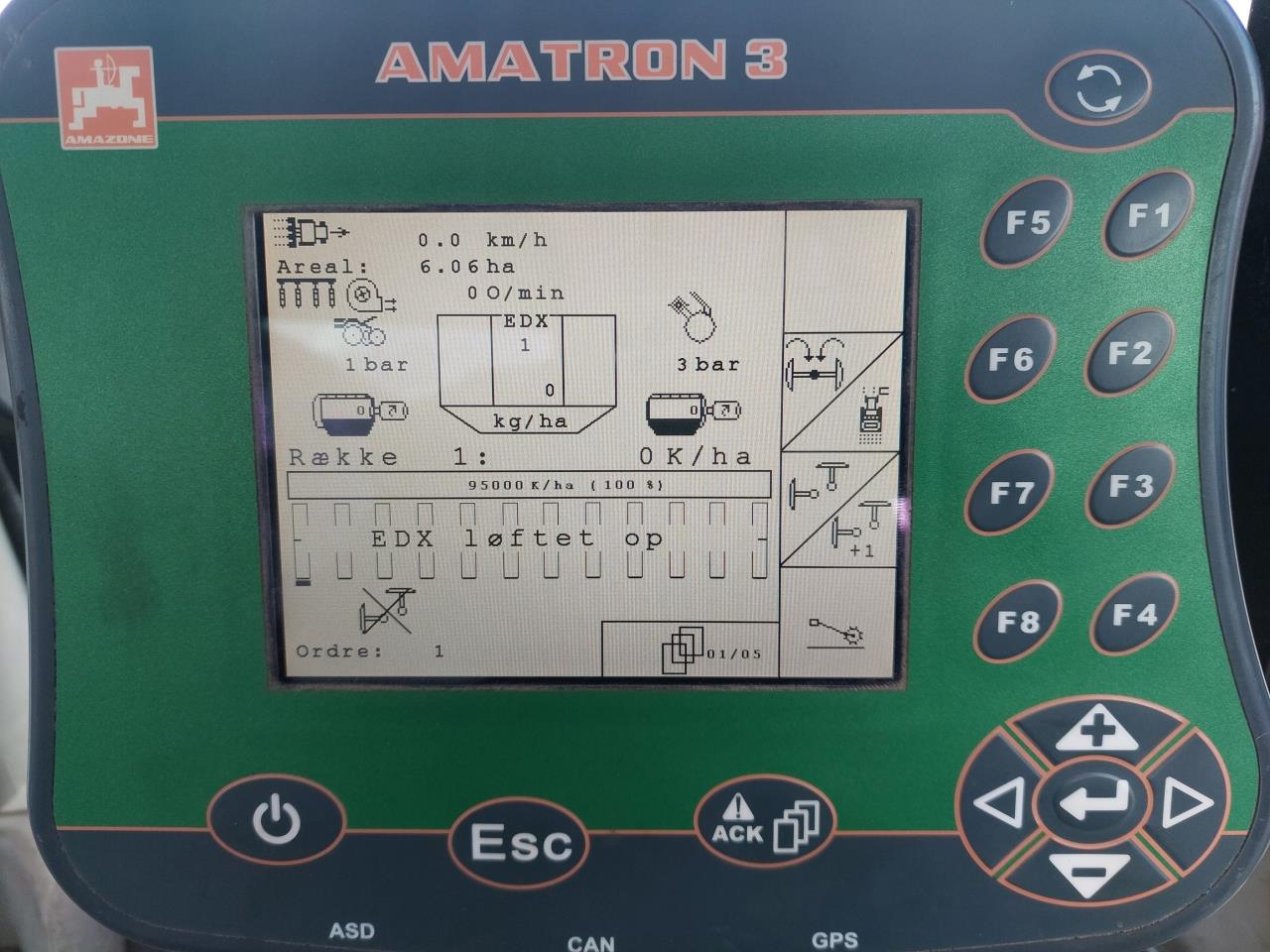 Velholdt og veludstyret Amazone EDX 9000-TC 12 rækket majssåmaskine med gødningplacering via gødningsskær. 2 centrale tanke til majs med GPS luk på række nivaeu via Amatron 3 terminal med egen antenne. Monteret med 270/95R32 tvillinghjul, med hydrauliske sporløsnere foran. Kun sået 4512 HA. Ring for yderligere info.
