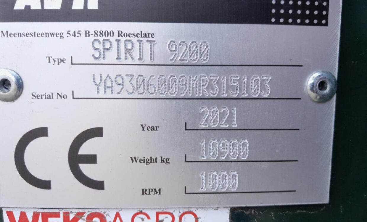 Velholdt AVR Spirit 9200 med bundkæde deling 40, Elevatorkæde deling 36, Transportkæde deling 40, Dobbelt rotorkam, Quick shift indføring, 3-delt skær, Midterskær, Hydraulisk skæraflastning, Dobbeltafstrygervalser på forreste pigbånd, Elektrisk indstilling af dobb. afstryger valse, Ekstra afstrygervalse 1. pigbånd, Booster funktion på 1. pigbånd, Hydraulisk opklap på kassefylder, 8T alm tank med tankoptimering, Automatisk niveaudligning, Hus, LED lys 6 stk, 9″ montor inkl. 4 stk. kamera + 7″ med 2 stk, Centralsmøring 10 punkter. kugletræk, Bemærk frilæggerudstyr og bejdsesystem på sorterbord medfølger ikke.