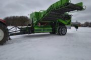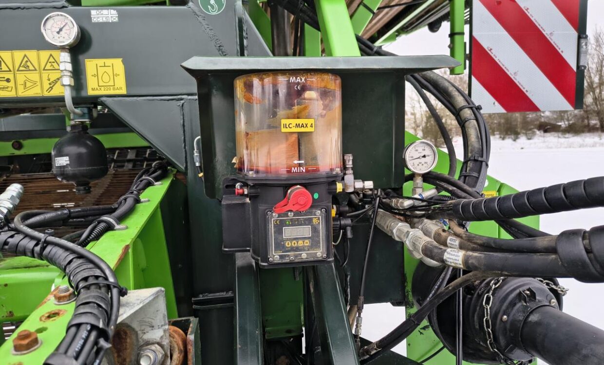 1. bundkæde 43, 2 bundkæde 43, Elevatorkæde 40, Variokæde 35, Skråtstillet pigbånd V50, Tværgående pigbånd V40, Cleanflow ruller Ø75 mm, Ekstra rulleskær højre side, Stålplade i indføring, 4 ekstra rækkeafriver, Afdækning bag skråstillet pigbånd, Afdækning for gearkasse under skråstillet pigbånd, Returbælte under topkæde, Aut. Kamtrykregulering, Aut. niveauregulering på skråstillet pigbånd, Automatisk niveauudligning, Boostfunktion på tværgående pigbånd, Afstrygervalser på tværgående pigbånd,WB tank ca. 6,5tons for aflæsning uden stop, Hydraulisk hjultræk, Hydraulisk hjultræk, Universal skærholder 1 skær pr række, midt skær, LED lys 8 stk. 2×9″ monitor inkl. 7 stk. kamera – 1 stk. bakkamera inkl montering, Centralsmøring komplet til hele maskinen.