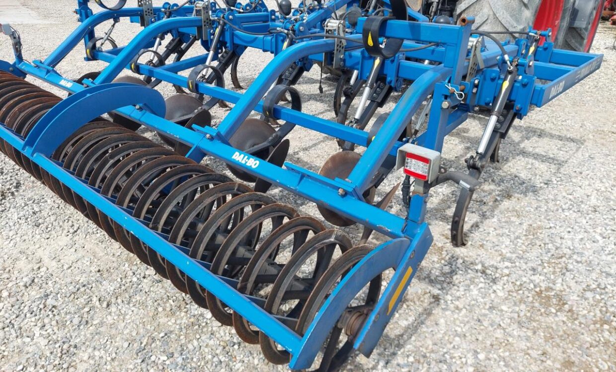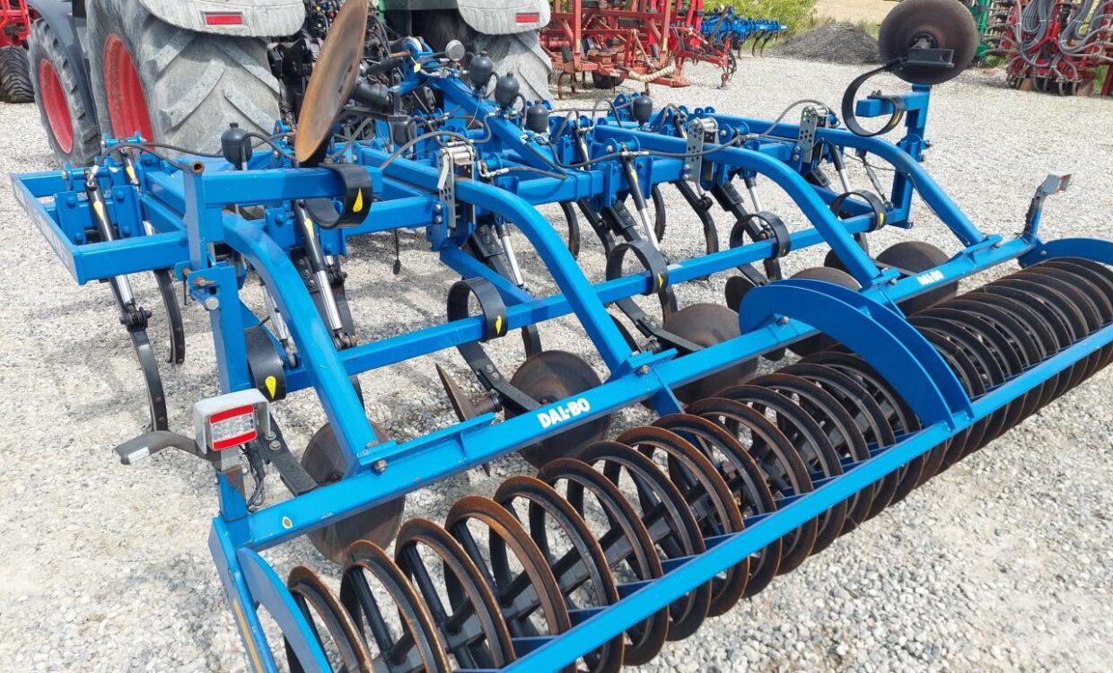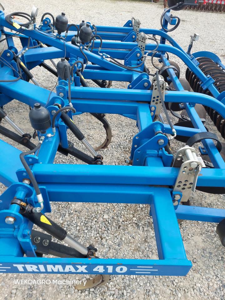 Velholdt Dalbo Trimax 410 NSH 2D med 15 tænder for delt på 3 buller. Tænderne har hydraulisk stensikring. Udjævnerdisce. Dybdejustering via T-ringspakkeren. Monteret med LED-lys og sidemakering.