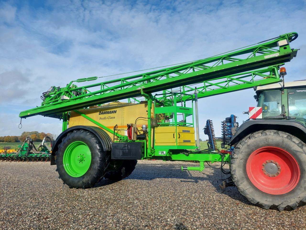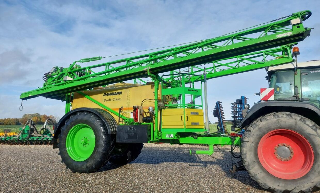 Velholdt Dammann ANP 5036 Profi Class med 5000L tank og 36m bom, 8 sektioner, dobbelte dyser med luftopluk, som kan skiftes fra traktoren, autofyld, Automatisk bomhøjde regulering, hvor bommen kan gå over vandret, hydrauliske bremser og 20.8R42 hjulmontering. Terminal med tilhørende GPS-antenne og sektionskontrol. Holder syn til 04-2025