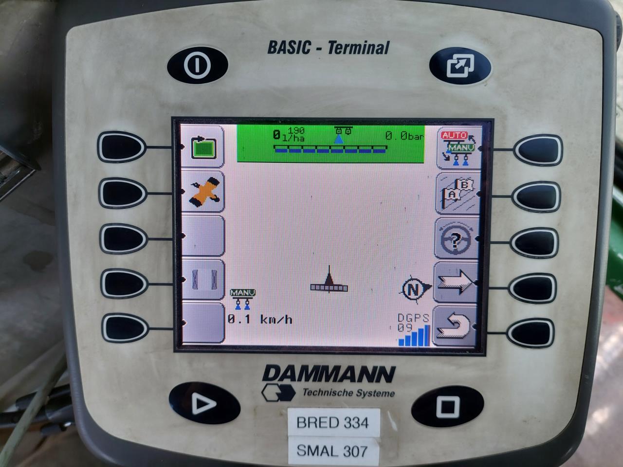 Velholdt Dammann ANP 5036 Profi Class med 5000L tank og 36m bom, 8 sektioner, dobbelte dyser med luftopluk, som kan skiftes fra traktoren, autofyld, Automatisk bomhøjde regulering, hvor bommen kan gå over vandret, hydrauliske bremser og 20.8R42 hjulmontering. Terminal med tilhørende GPS-antenne og sektionskontrol. Holder syn til 04-2025. Afhentning pris ab plads.