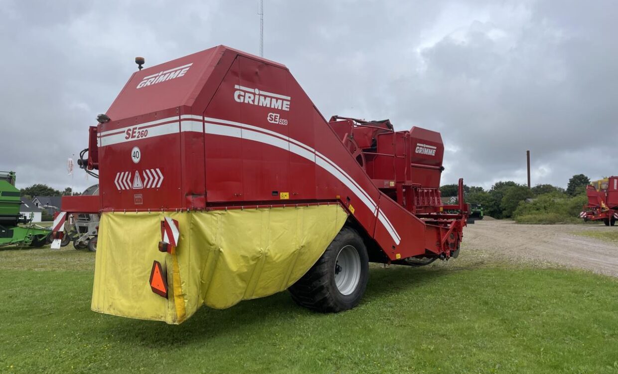 SE 260 med 150cm indføringsbredde, 3 delt skær. hjulstyring, Nivellering, LED arbejdslys, trafiklys, bundkæde deling 50, Elevatorkæde deling 35. Kugletræk, luftbremser, Grimme monitorsystem, VC-50 terminal + GBX terminaler. Enkel og pæn maskine. monteret med 800/45-30,5 hjul. Ring for yderligere info
