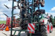 12 Rækket nedfælder til majs, med 75 cm afstand. Monteret med Harsø fordeler og Horsch Terra-Grip tænder.