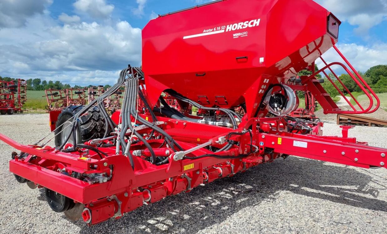Horsch Avatar 6.16 SD udstyret med 5000L dobbelttank, 36 stk Ø48cm såskiver med op til 350 kg´s skærtryk. Monteret med stålstjerne hjul for lukning af så furen. Kan så på hverrække, hveranden eller skiftevis med 2 forskellige produkter. Har kun kørt demo og sået 630 Ha. Kontakt din lokale WEKOAGRO sælger. Salg og Rådgivning, Nord-, Øst- og Midtjylland, Søren Christensen 23226402. Salg og Rådgivning Fyn og Sønderjylland, Uffe Christensen 23226401. Salg og Rådgivning Sjælland, Sydhavsøerne og Bornholm. Ole Christiansen 23226396. Salg og Rådgivning Sjælland, Sydhavsøerne og Bornholm. Jens Hansen 27222601