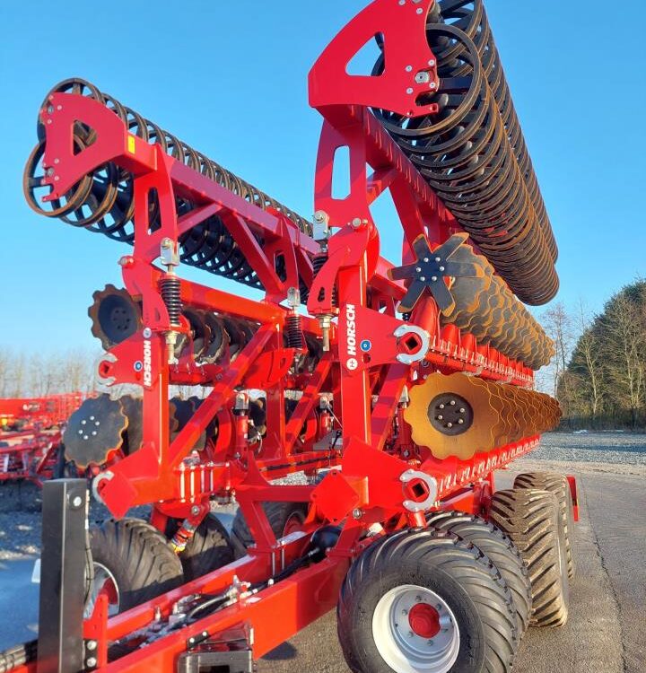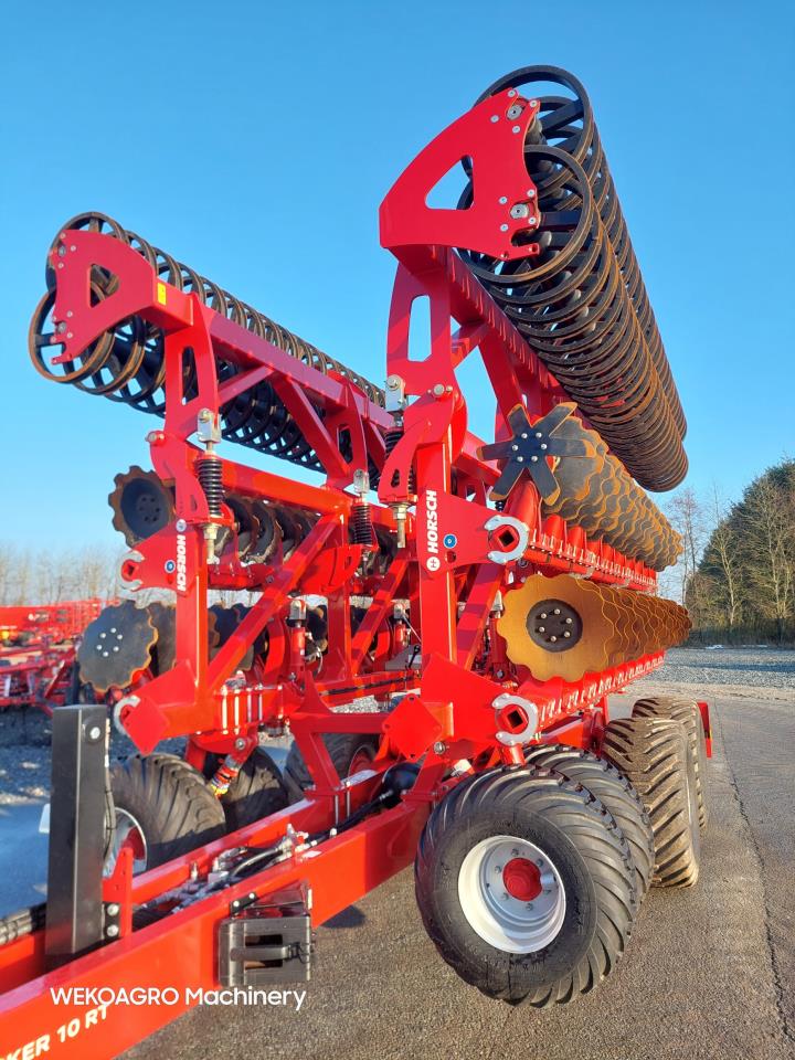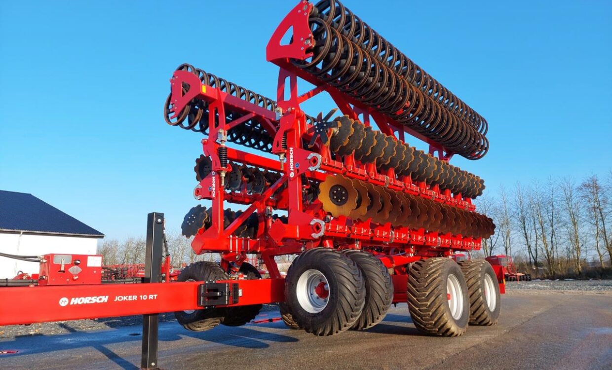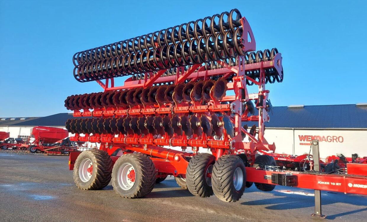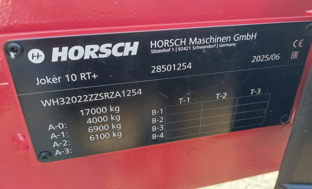Horsch Joker RT 10+ udstyret med frontpakkerhjul, dobbelt Rollpack Ø55 og hydraulisk dybderegulering. Store 550/45-22.5 transporthjul med luftbremser. Maskine med kæmpe kapacitet, har kun kørt demo. Ring for yderligere info og pris