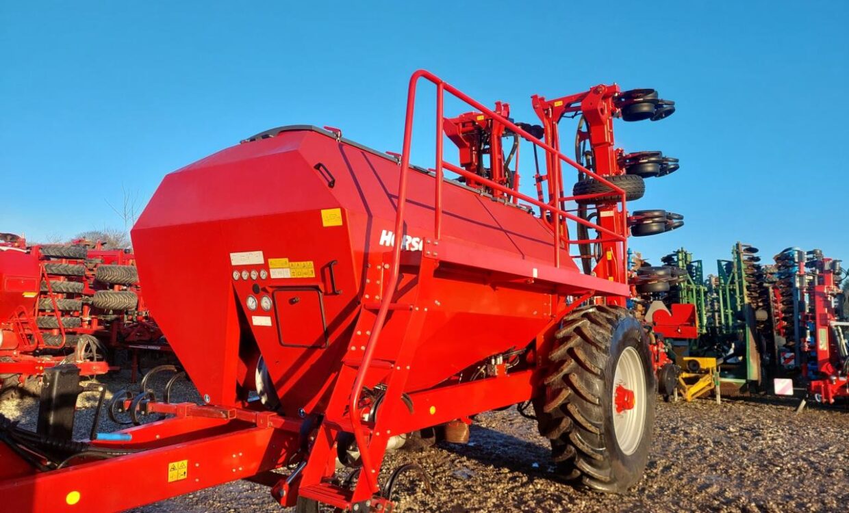 Horsch Maestro12.75 SW med central fyldning “Seed on Demand system” som automatisk fyldes fra 2000L frøtank, derudover rummer den 7000L gødning. Der kan køres med optil til 300 kg´s skærtryk på hver såenhed. Afblænding på række niveau fra traktorens sektionskontrol (eller tilkøb af sektionskontrol til medfølgende terminal.) Monteret med 520/85R42 hjul og der er udskud på hjulakselen, så der ikke køres i rækkerne. Hydrauliske bremser. Monteret med sporløsnere bag traktorens hjul. Kun sået 5.543 Ha. Ring for yderligere info.