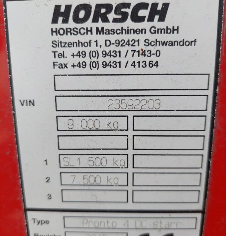 Velholdt Horsch Pronto 4DC PPF med 3800 L dobbeltank med 60/40 fordeling med seperate gødningsskær, som også kan samså, hvis behovet er for det. Monteret med Doudrill med sneglegiftslanger og såning på hveranden række. Sortjords markører og 2 ekstra “GPS såskær”, så der altid kan køres effektivt 4,00 m . ISO-BUS maskine, der kan graduere tildeling. Står med rigtig gode sliddele. Sået ca 3.100 Ha
