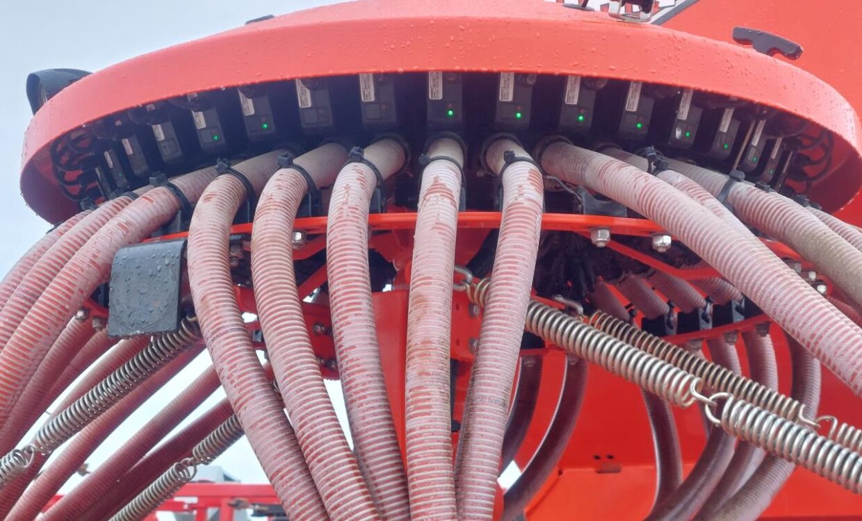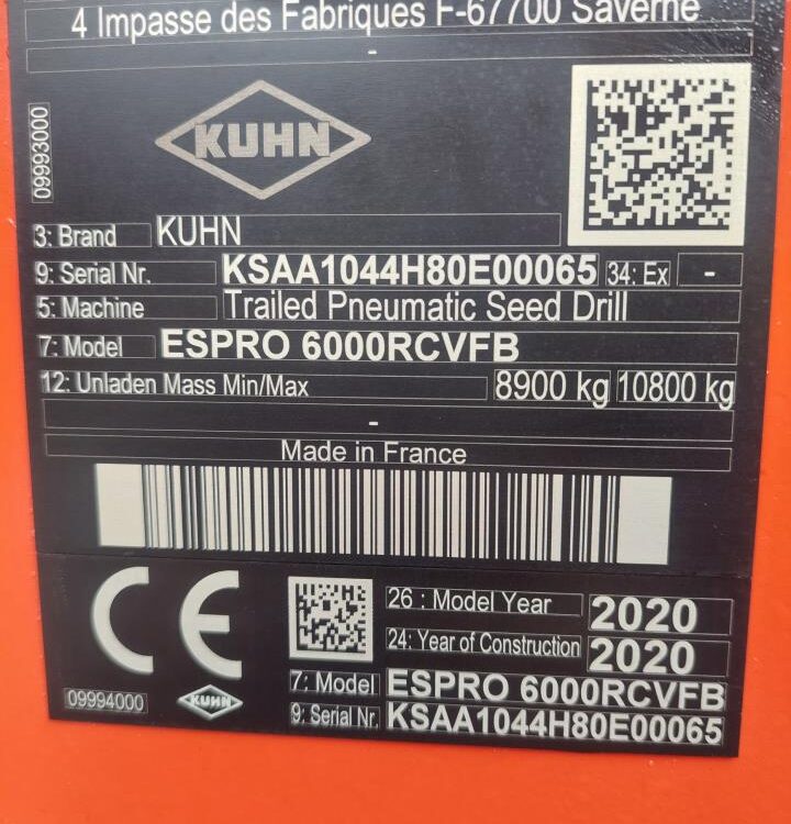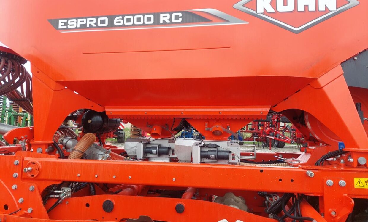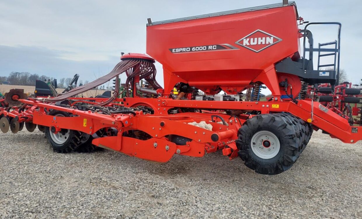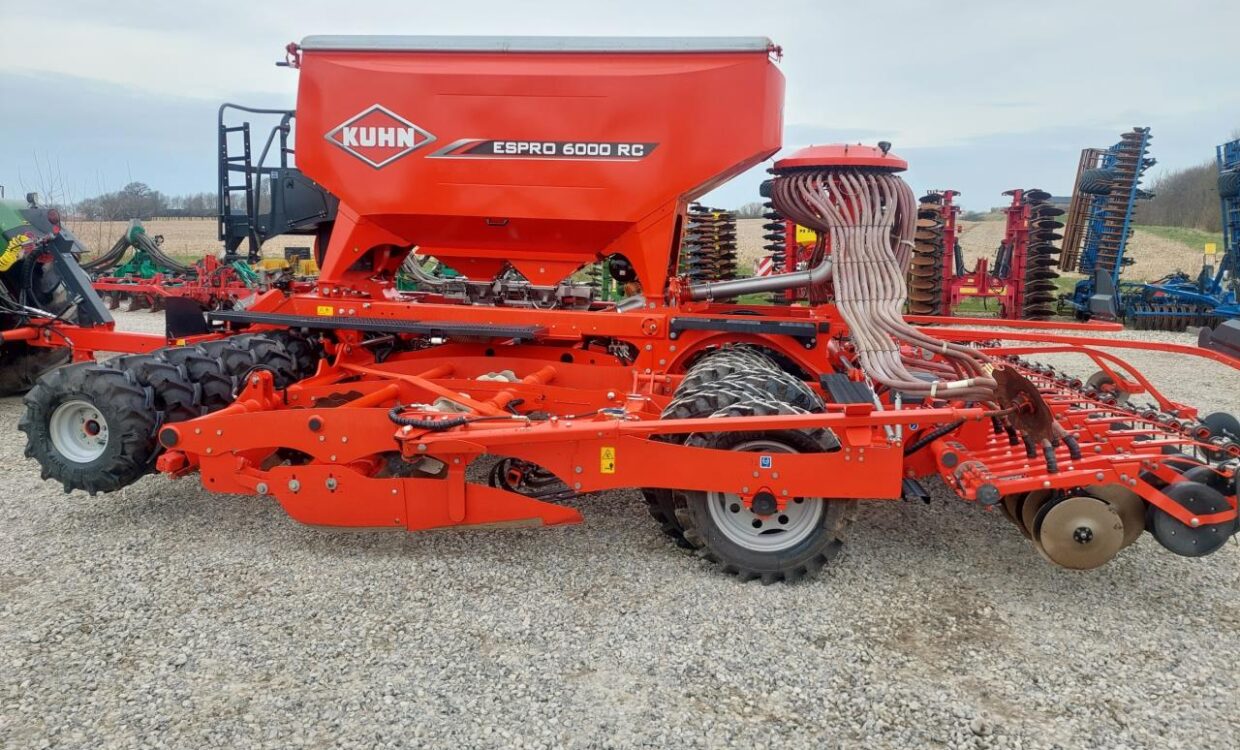Velholdt Kuhn Espro 6000 RC i “Mix” udgaven med samsåning af f.eks korn og gødning. Hydraulisk justerbar slæbeplanke, Sortjordsmarkører, 40 stk Crossflex såskær + 1 ekstra GPS såskær i hver side. Vistaflow med overvågning og universel sprøjtesporsmarkering efter traktorens GPS. Udstyret med luftbremser. Maskinen kører ISO-BUS. Kun sået 993 HA. Ring for yderligere info.