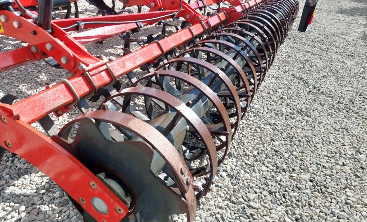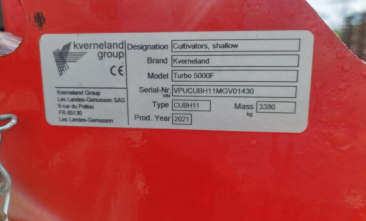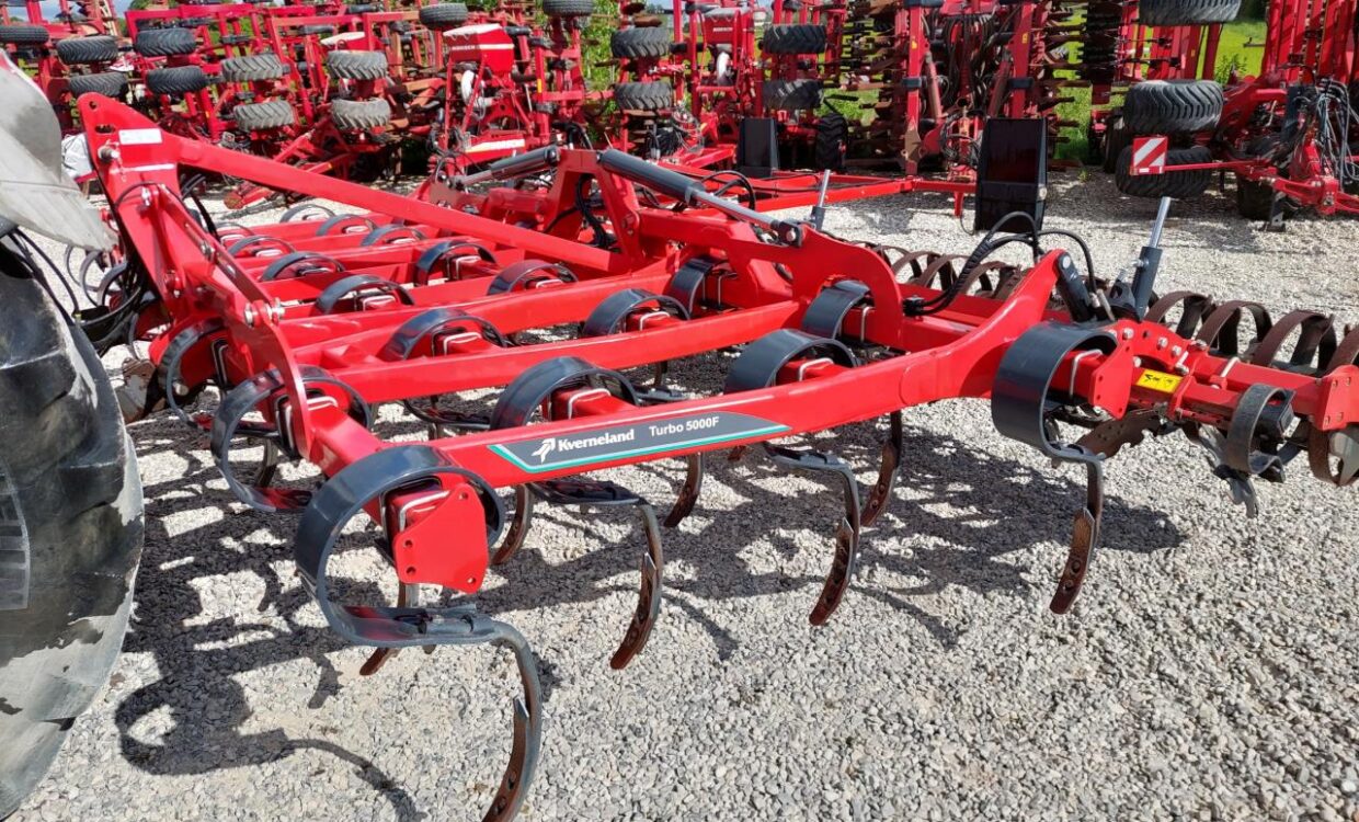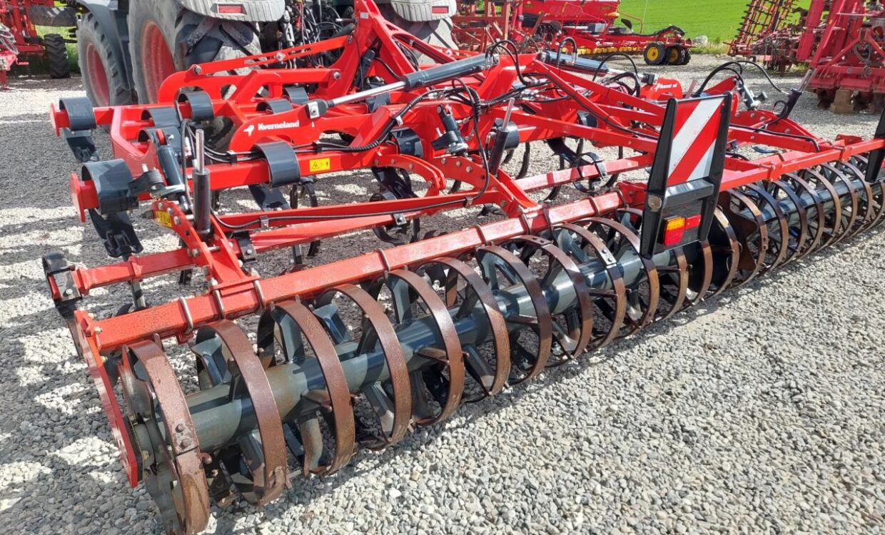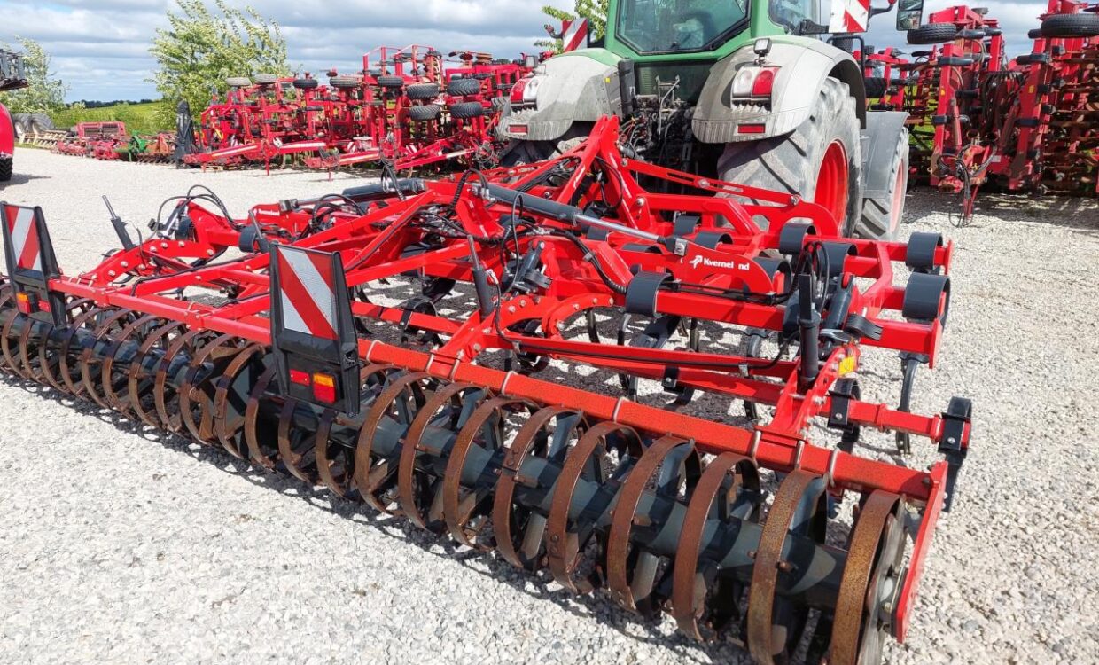 Velholdt Kverneland Turbo 5000F med 27 tænder fordelt på 4 buller, hydraulisk justerbar udjævner disc og hydraulisk justerbar dybdekontrol via Actiflex-pakkeren på Ø580 mm. Trafiklys monteret. Ring for yderligere info.