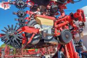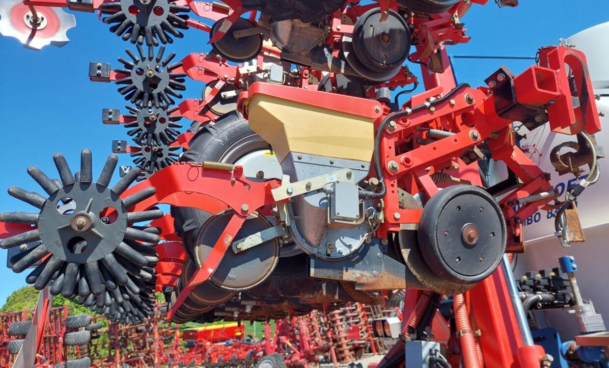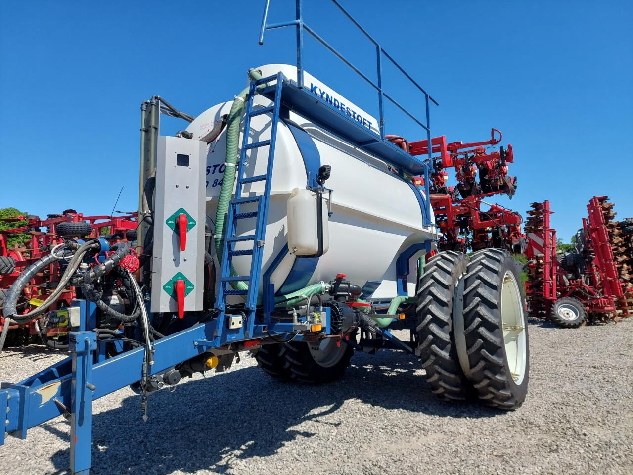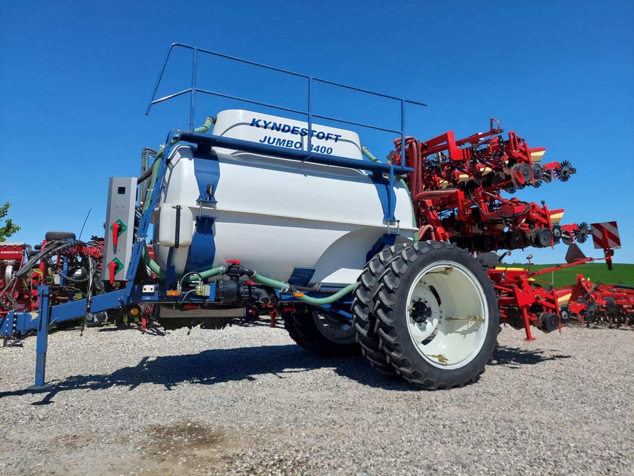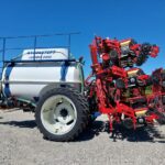 Velholdt Kverneland 18 rækket Unicorn med Syncro-Drive udstyret med stenplove, slæbetildækker, 5 cm såskær, ridsemarkør og lys. ISO-BUS styret via IsoMatch Tellus terminal med tilhørende licensnøgle GEOcontrol og maskinlicens Monteret på Kyndestoft Jumbo 8400 gødningsvogn med lykketronic terminal med 3 sektioner, 2 dobbelte virkende udtag bagud, kugletræk, frøsåkasse på siden, arbejdslys, 3″ pumpe til fyldning, 340/85R48 tvillinghjul. 18 stk nedfældertænder af germinatortand forsynet via 3 stk Quikdyser med nondryp, for hurtig doseringsændring. Afluk af gødning i sprøjtespor. Ring for yderligere info.