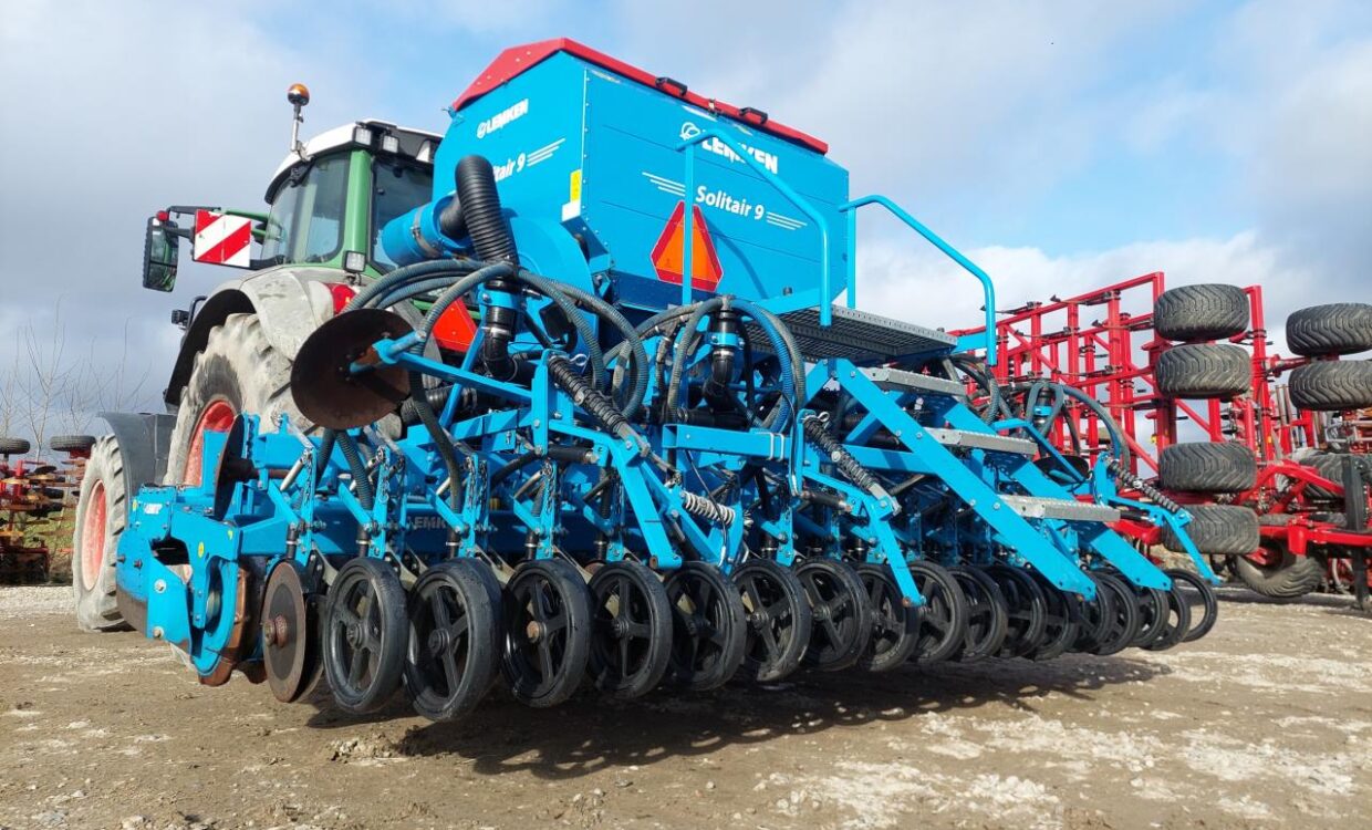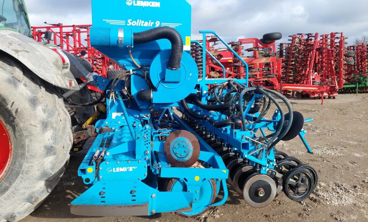 Velholdt Lemken Solitair 9/400 DS luftsåmaskine med elektronisk udmadning, 32 individuelle ophængte såskær med trykhjul. Monteret på Zirkon 10/400 rotorharve med trapezvalse. Sortjordsmarkører og markører (Har været afmonteret ved transport) Maskinen kører ISO-BUS. Står med rigtig gode såskær. Sået 3895 Ha