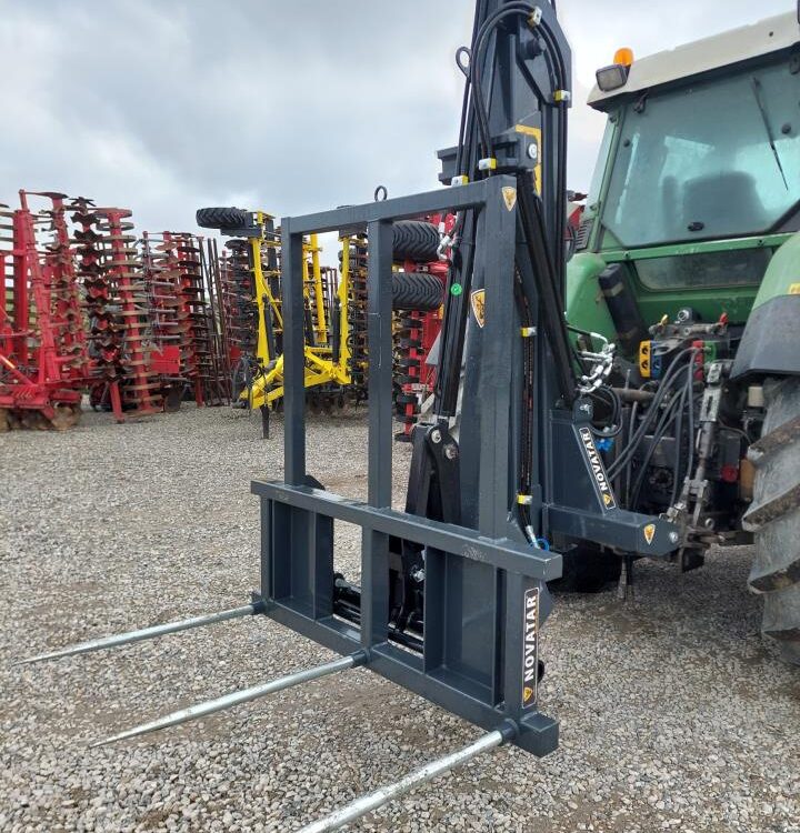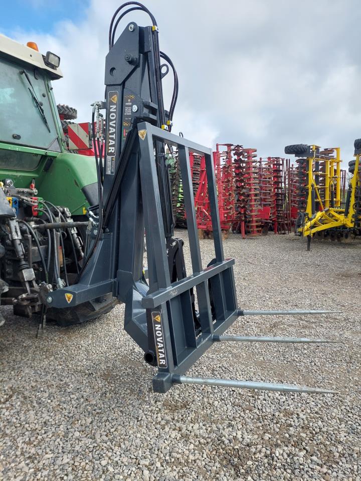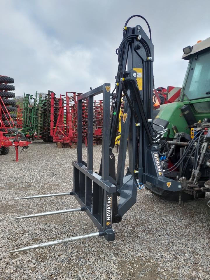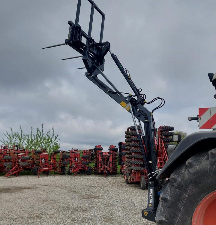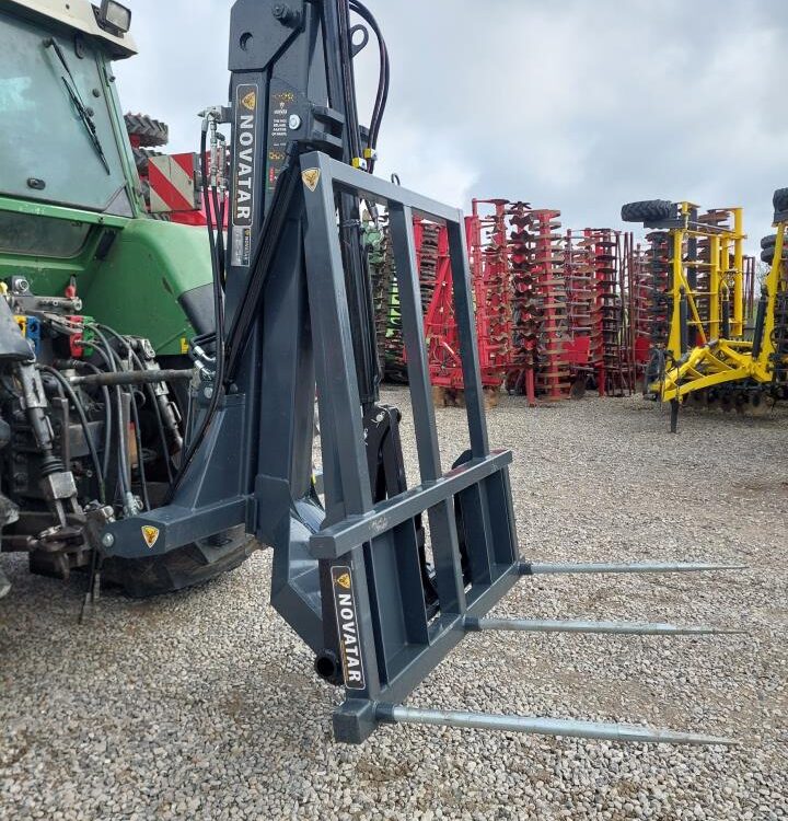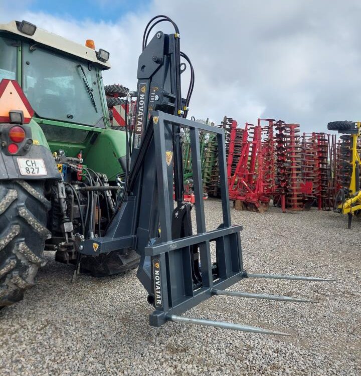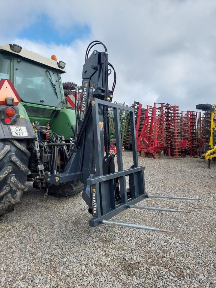 Novatar KT-5000 frontlæsser til frontlift eller bag montering på traktor. Kræver 2 dobbeltvirkende udtag. Løftekapacitet 1000 kg – Udstyret med Euro skifte og monteret med ballegreb. Der er ført slanger op til 3 funktion. Står som ny.