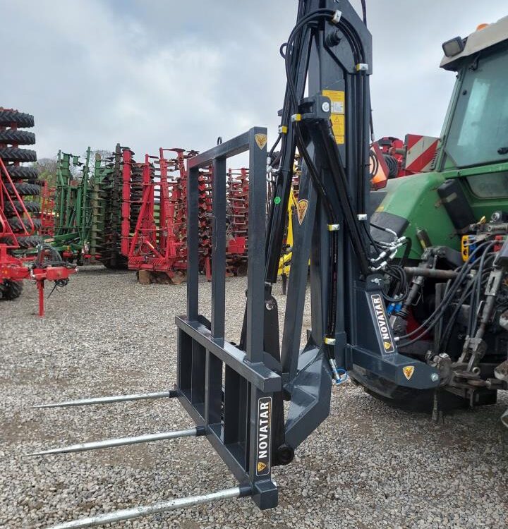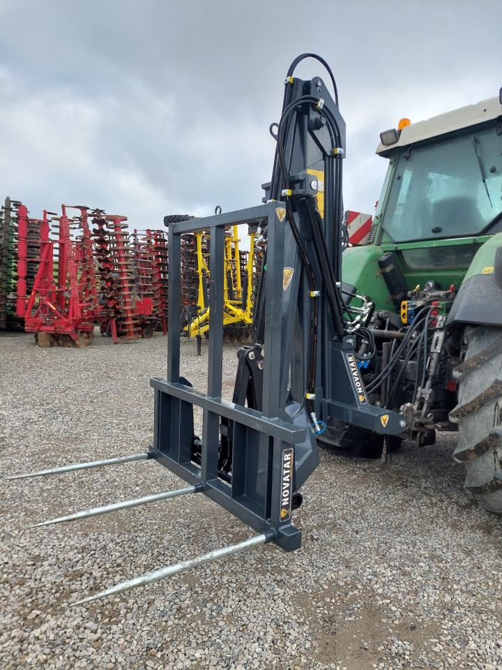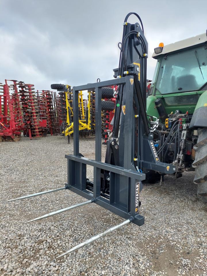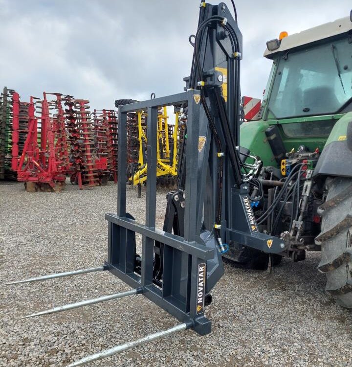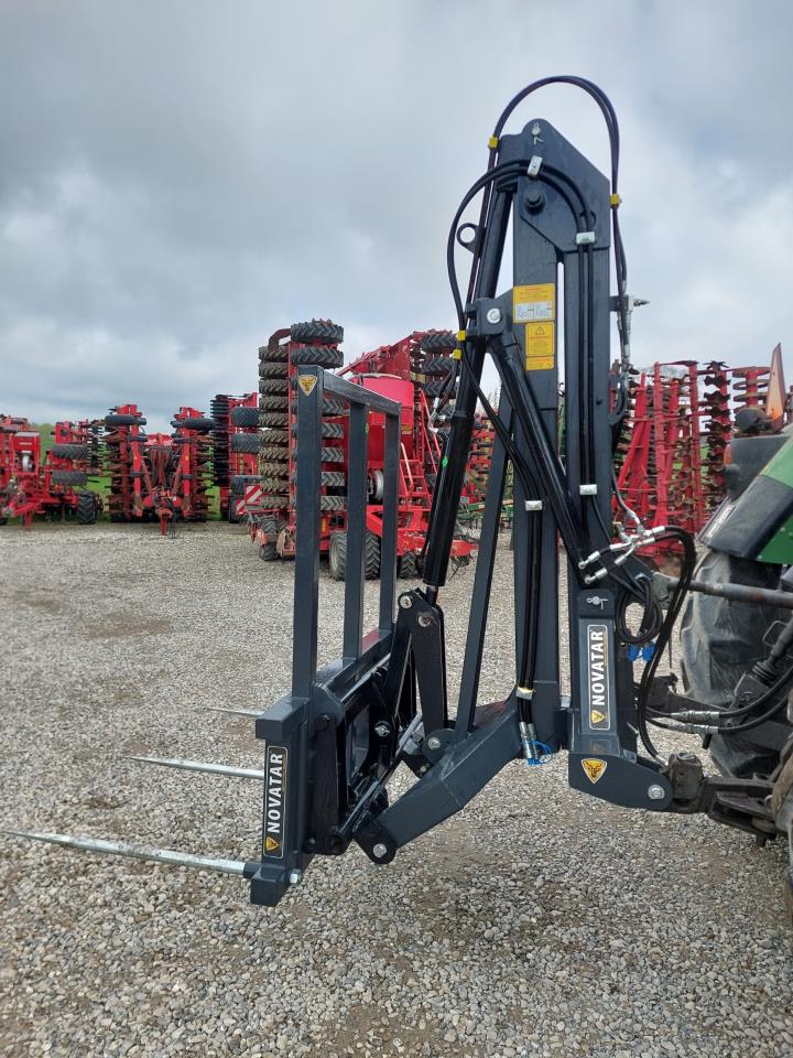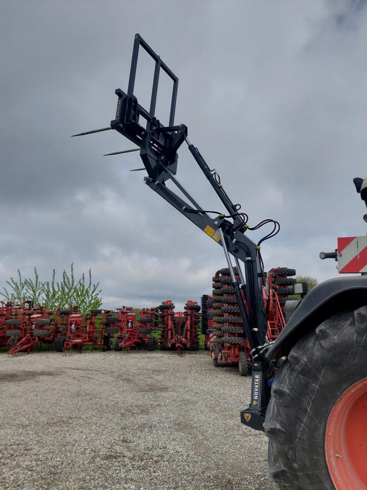 Novatar KT-5000 frontlæsser til frontlift eller bag montering på traktor. Kræver 2 dobbeltvirkende udtag. Løftekapacitet 1000 kg – Udstyret med Euro skifte og monteret med ballegreb. Der er ført slanger op til 3 funktion. Står som ny.