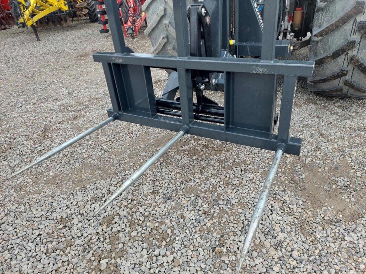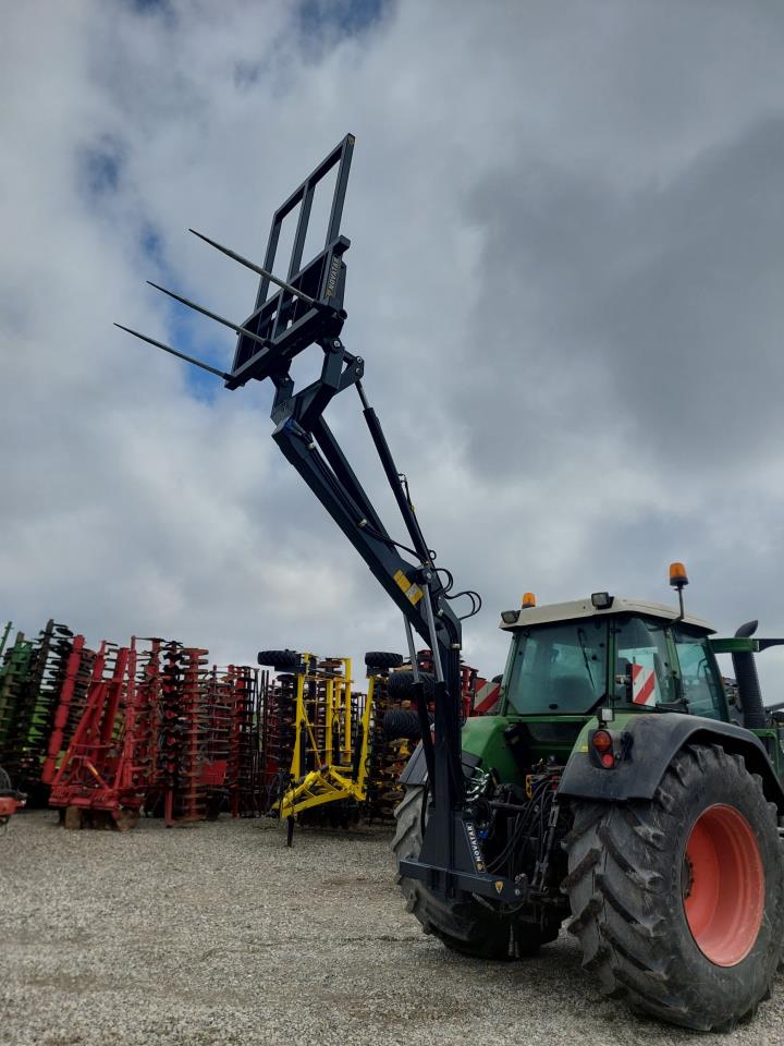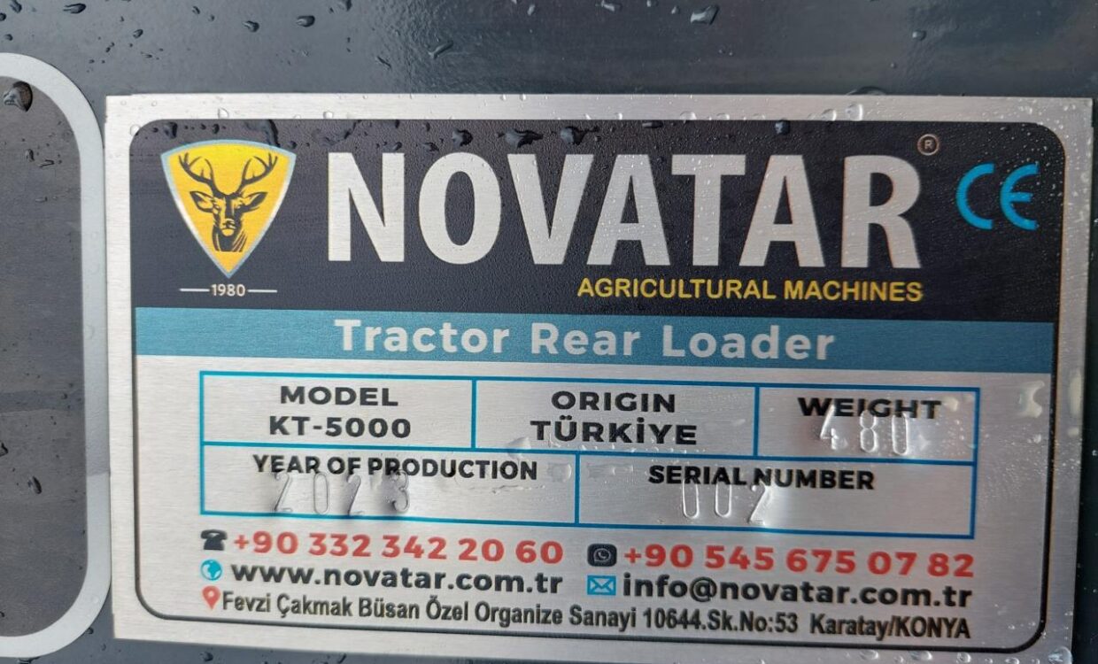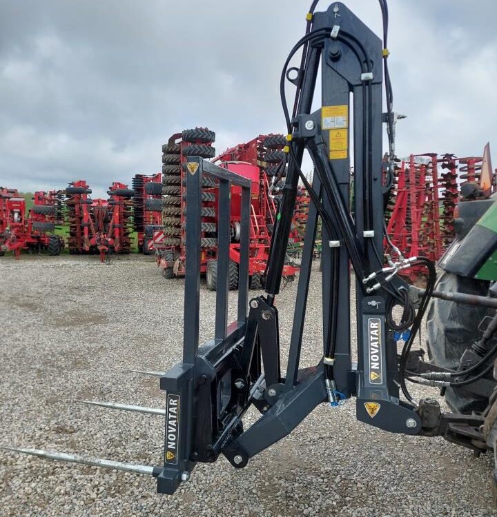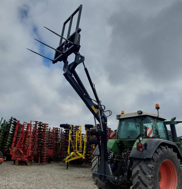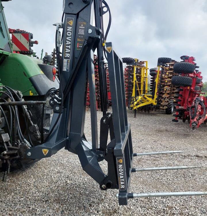 Novatar KT-5000 frontlæsser til frontlift eller bag montering på traktor. Kræver 2 dobbeltvirkende udtag. Løftekapacitet 1000 kg – Udstyret med Euro skifte og monteret med ballegreb. Der er ført slanger op til 3 funktion. Står som ny.