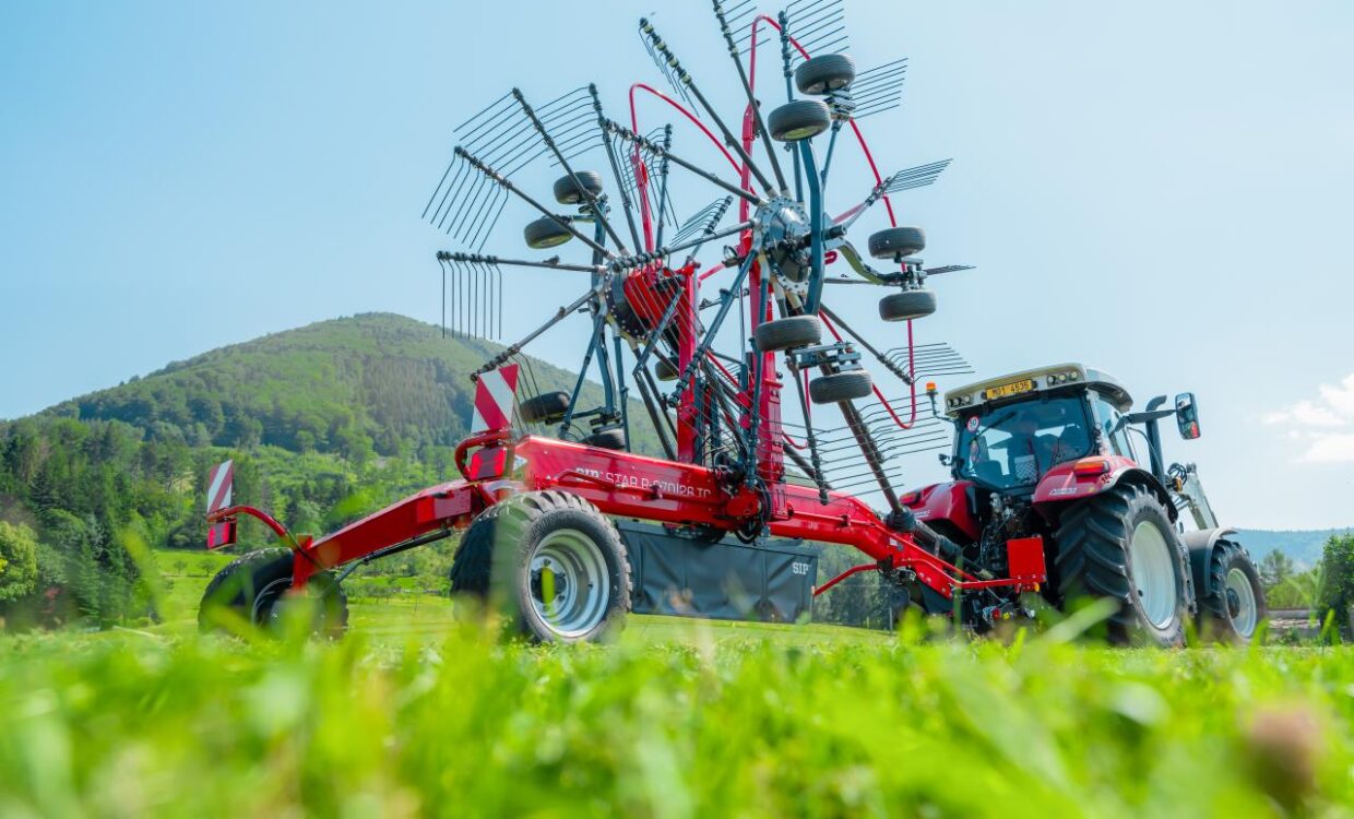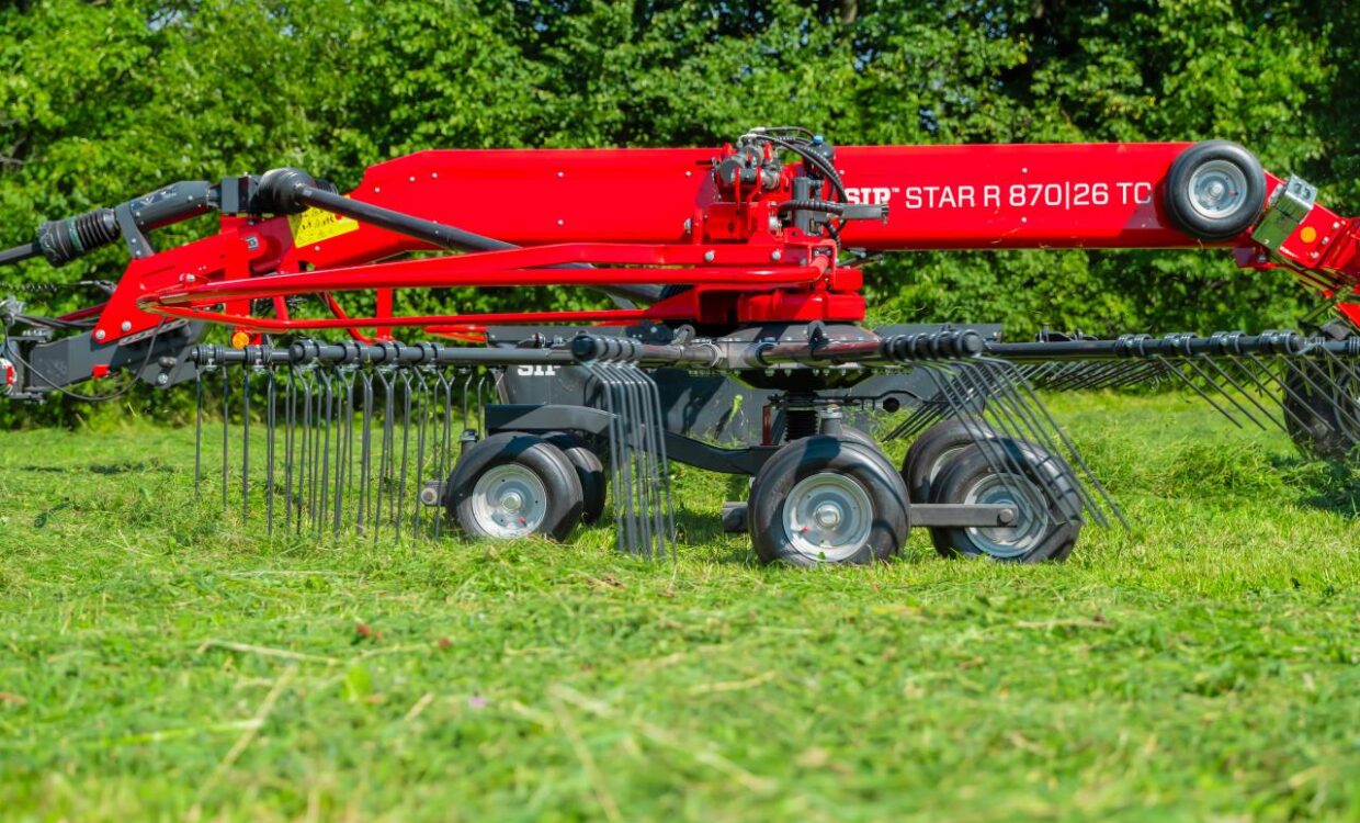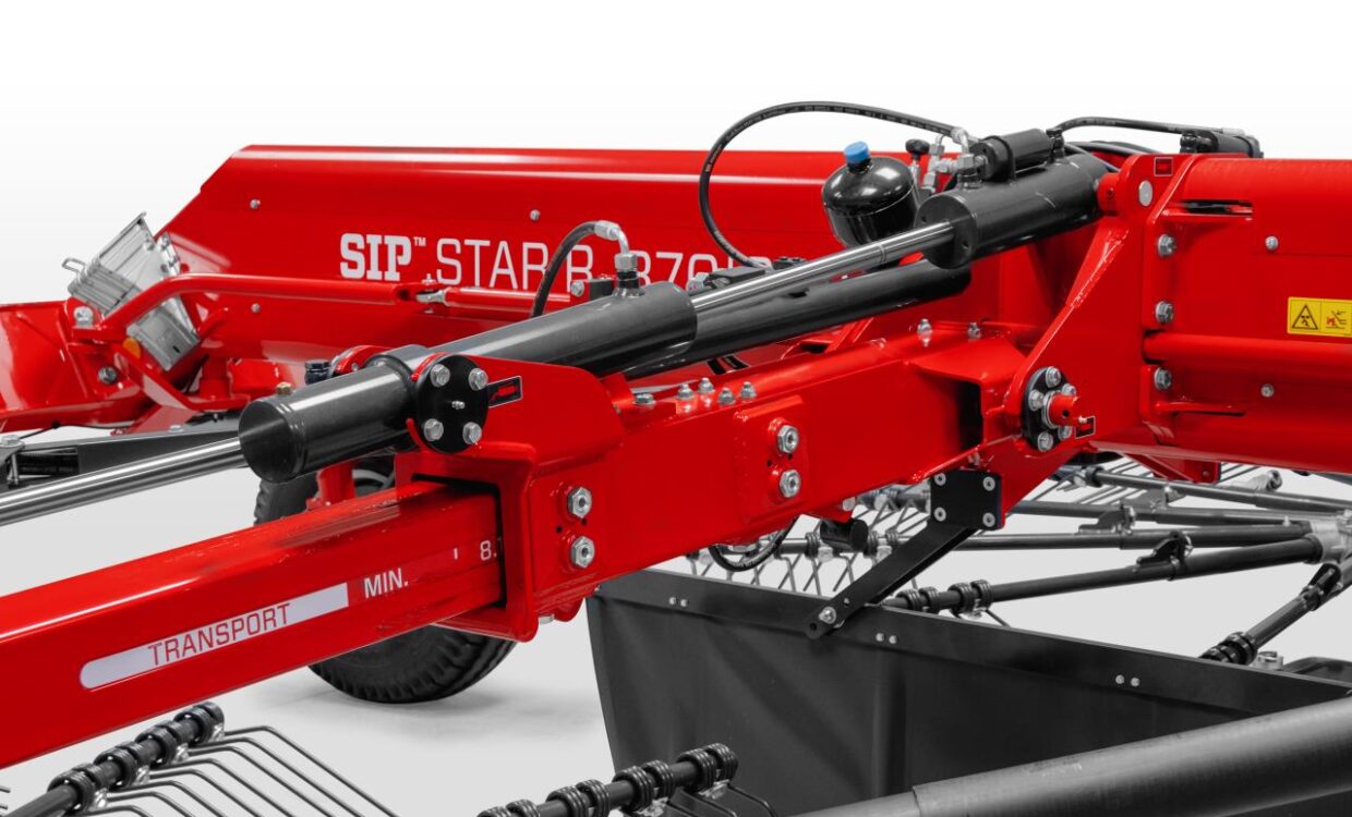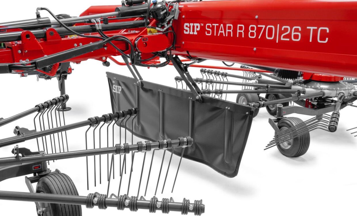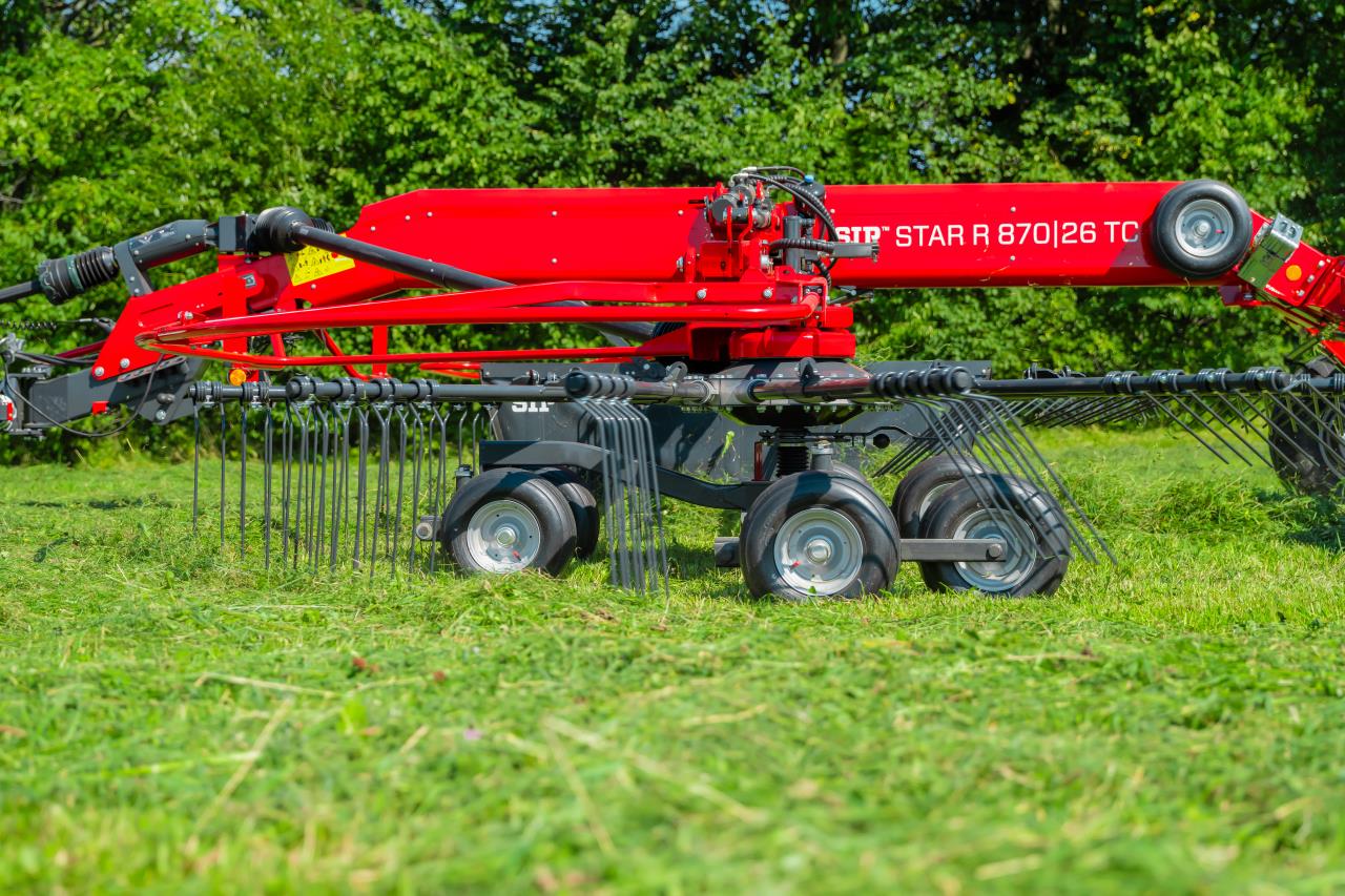 SIP 2 rotors rive med alt det rigtige udstyr monteret. Walking tandem undervogn – 6 hjul under hver rotor. 13 arme per rotor, separat rotorlift, hydraulisk højderegulering, Hydraulisk variabel arbejdsbredde fra 7,6 – 8,6m, Skårdug, Lysudstyr, 380/55-17 flotation hjul, Ekstra reservehjul for rotorer, markedets største kurveskive med mulighed for 30° justering, Teflon bøsninger ved rivearme, i stedet for lejer – mindre sårbar overfor fugt. Husk 2+1 års garanti – Så er din investering sikret. Ring for mere info, vi har også andre modeller på lager til omgående levering.